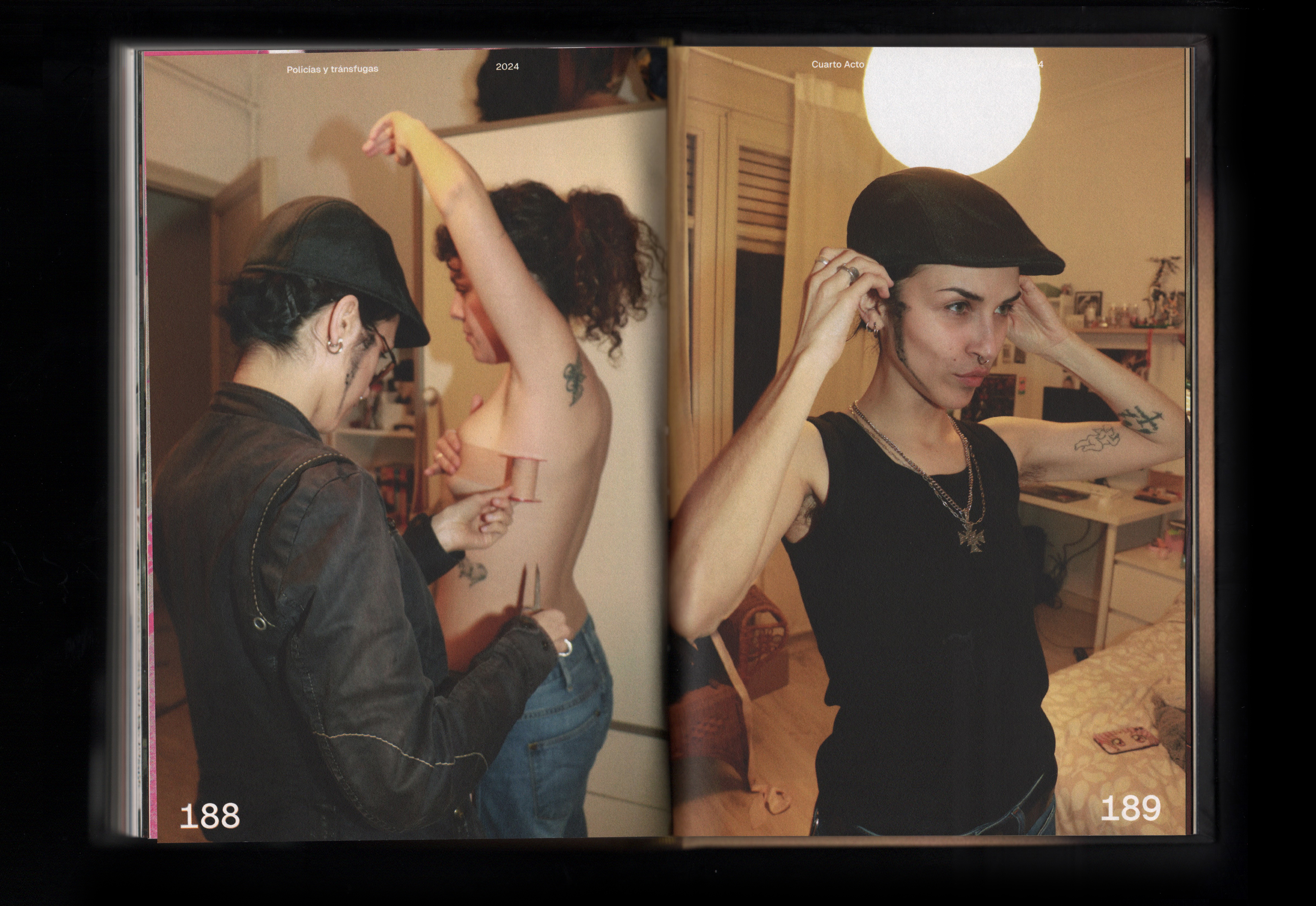 This editorial piece gathers an amateur research and essay on gender binarism and its regulation systems. It acts as a junk drawer, collecting ideas, references, actions, and graphic and visual experimentation, so that form and content support each other horizontally, and through design, they hybridize generating new ideas.